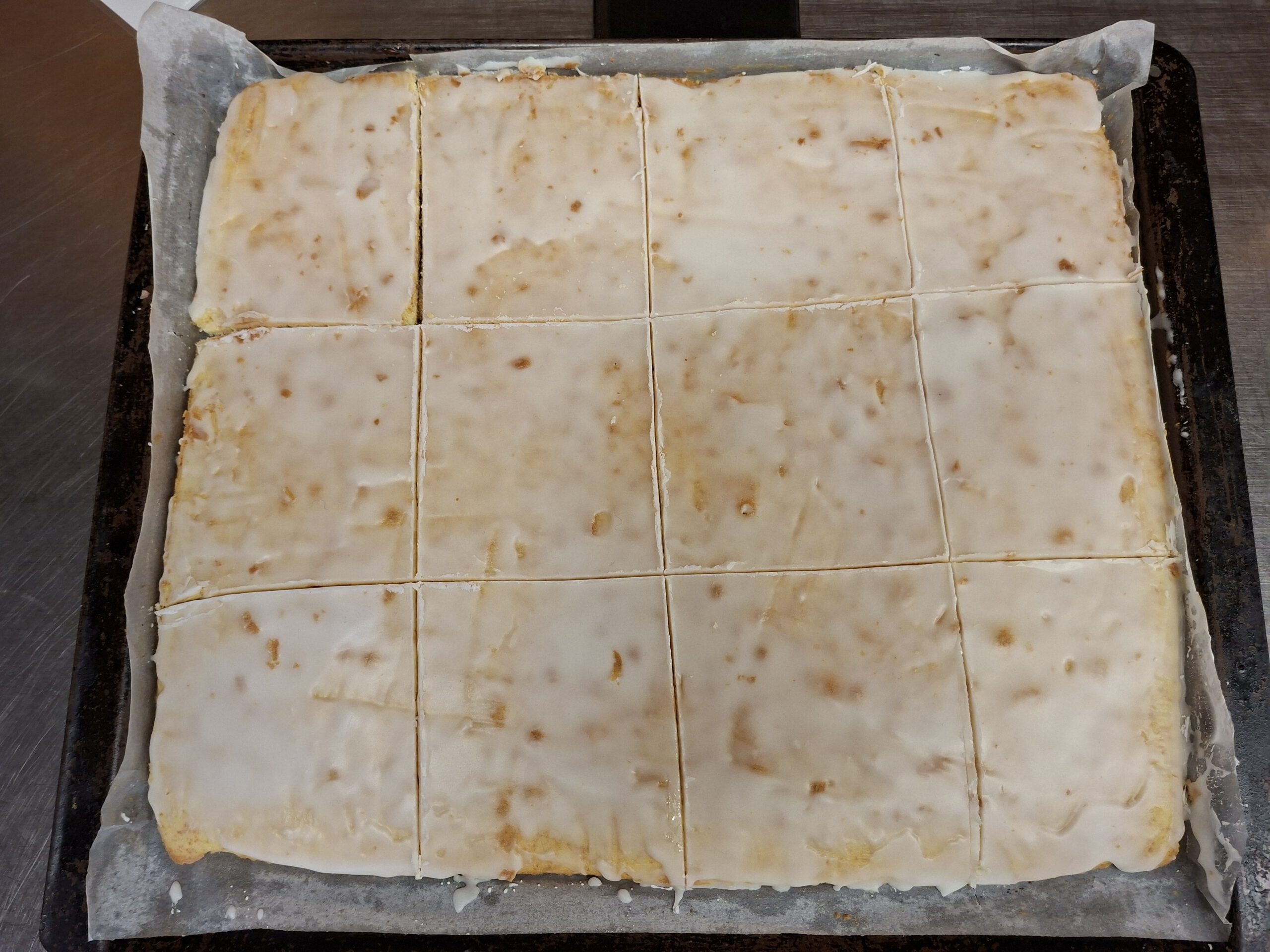 Diesmal standen zu der Auswahl ein Birnenkuchen, ein Apfelkuchen und als Blechkuchen Zitronenschnitten.