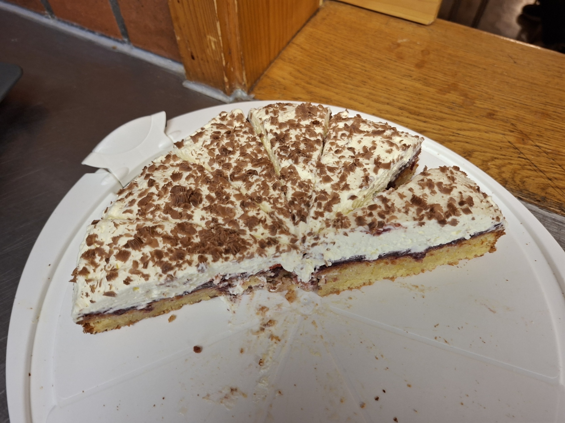 Zusätzlich zu den üblichen 3 Kuchen (diesmal waren es ein Käse-Brombeer-Kuchen, ein Apfelstreusel-Blechkuchen und eine Herrentorte)