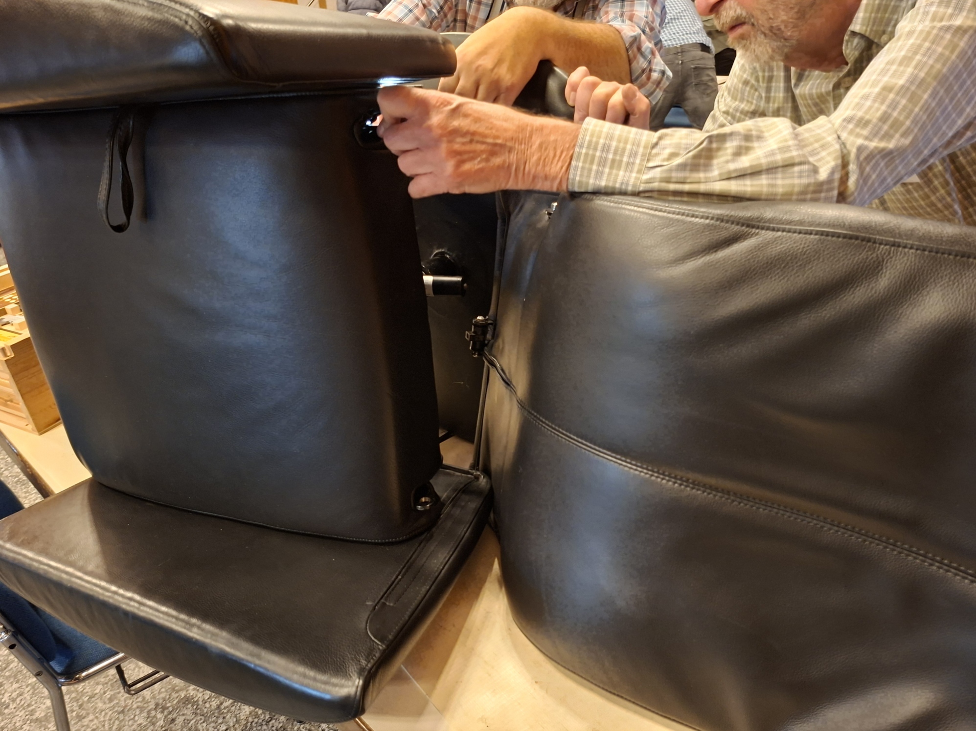 Es wurde zwar eine technische Lösung gefunden, um die Polsterung zu reparieren. Allerdings hätte man den Bezug aufschneiden müssen. Solch einer Reparatur überfordert unsere Möglichkeiten.